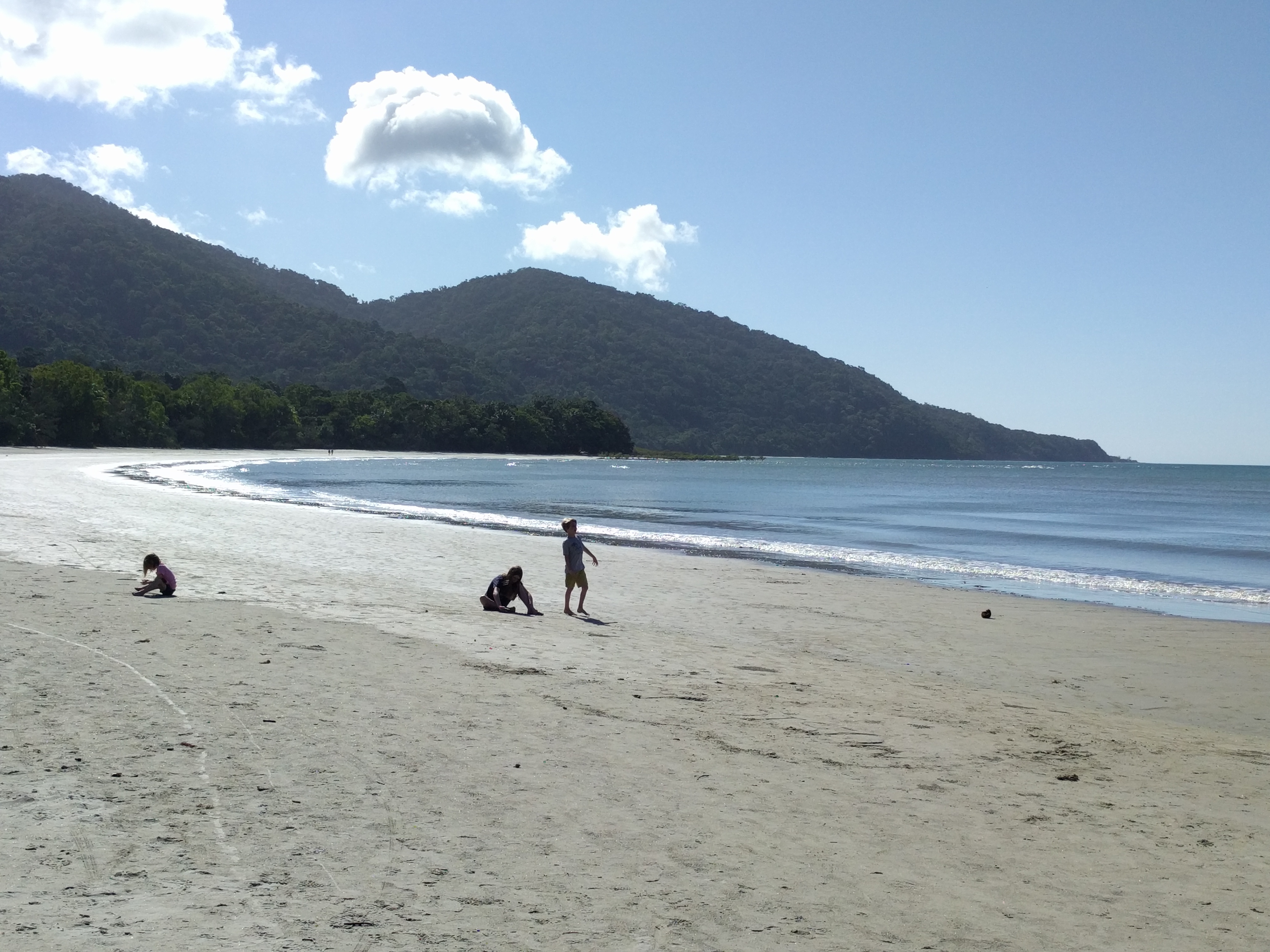 SUNDAY Father’s Day! Father’s Day is actually celebrated in September here in Australia. We gave Wes his gifts before we left Coogee and today we tried to treat Wes to a nice day. As I mentioned, I haven’t driven yet. So I wasn’t able to do much preparation. We made cards and let him take it easy and watch golf. We went for a very nice lunch at the marina in Port Douglas and then went to the beach. Four Mile Beach is a beautiful beach. The water was so warm! Home in the afternoon for swimming and packing.