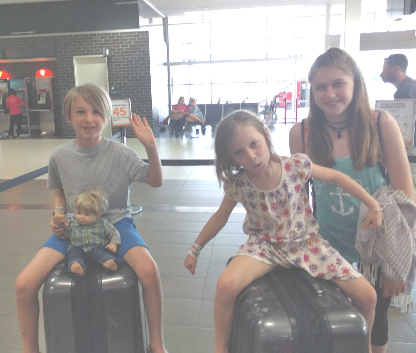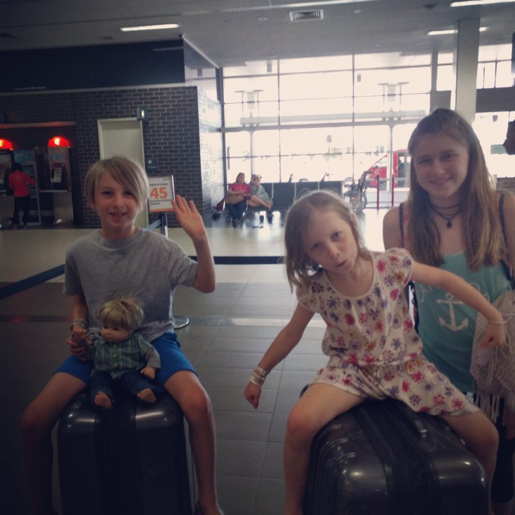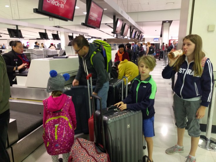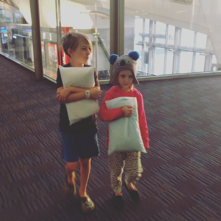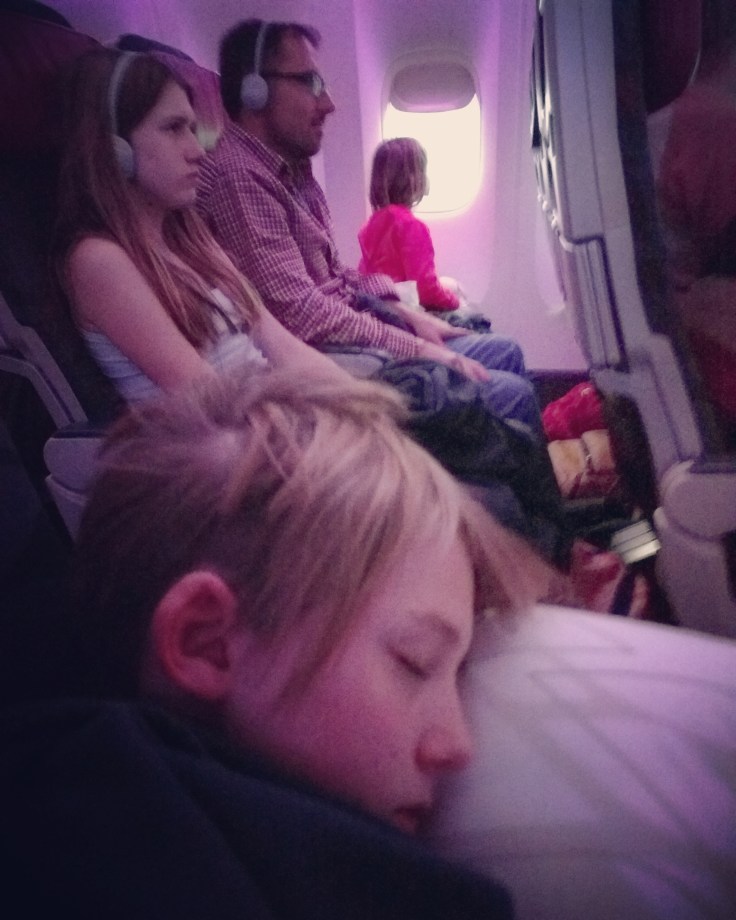 We left Sydney at 9:30am Tuesday July 11th. We got all our bags checked and borded nice and easy. I got the pleasure of sitting with Lukie. Since it was 9:30am flight time, we were not sleepy. This first flight was 13.5hours. The flight began with dinner service. Yup. Dinner at about 10am. Weird. Then they dim the cabin lights hoping you will sleep. Mid flight they gave us lunch. And 2 hours before we landed we got breakfast. So weird. Getting us on LAX time, I guess. Virgin Australia is awesome. Very comfy flight. Nice flight attendants. Coffee was good. We had decent food, and the kids got pretty good kids meals. Free drinks. It really wasn’t bad. Luke dozed at the end of the flight. The girls stayed awake the entire time. Mae kept saying over and over “The number one rule is to never go to sleep.” She watched Boss Baby 3 times and Trolls twice. She also didn’t even get up to use the bathroom. I watched Hidden Figures and a season of Weeds.