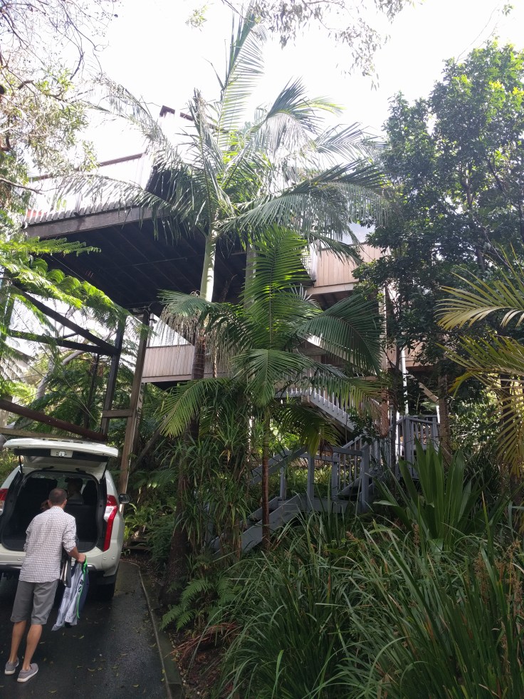 MONDAY  Our travel day was LONG. We drove from PD to Cairns. Flew 2 hours to Brisbane and then drove 2 hours to Byron. It wasn’t our smoothest trip (bags too heavy, couldn’t find food, rental car took forever, etc…) But any trip that ends safely is a win in my book. We arrived late to our new place in Byron. It was dark and pouring rain. We were all in good spirits and happy to get a good night sleep. We didn’t do air bnb here. We rented in a complex of sorts. It was a treetop house. Very cool! Our house was literally in the trees! We could see then ocean from our back deck and the birthday boy got to choose his bed. He picked the top floor loft pull out couch. Gave him some privacy….and the TV. There was a gym and pool and tennis courts and we could walk through the woods along a path to get to the beach. It was a short drive to the action.