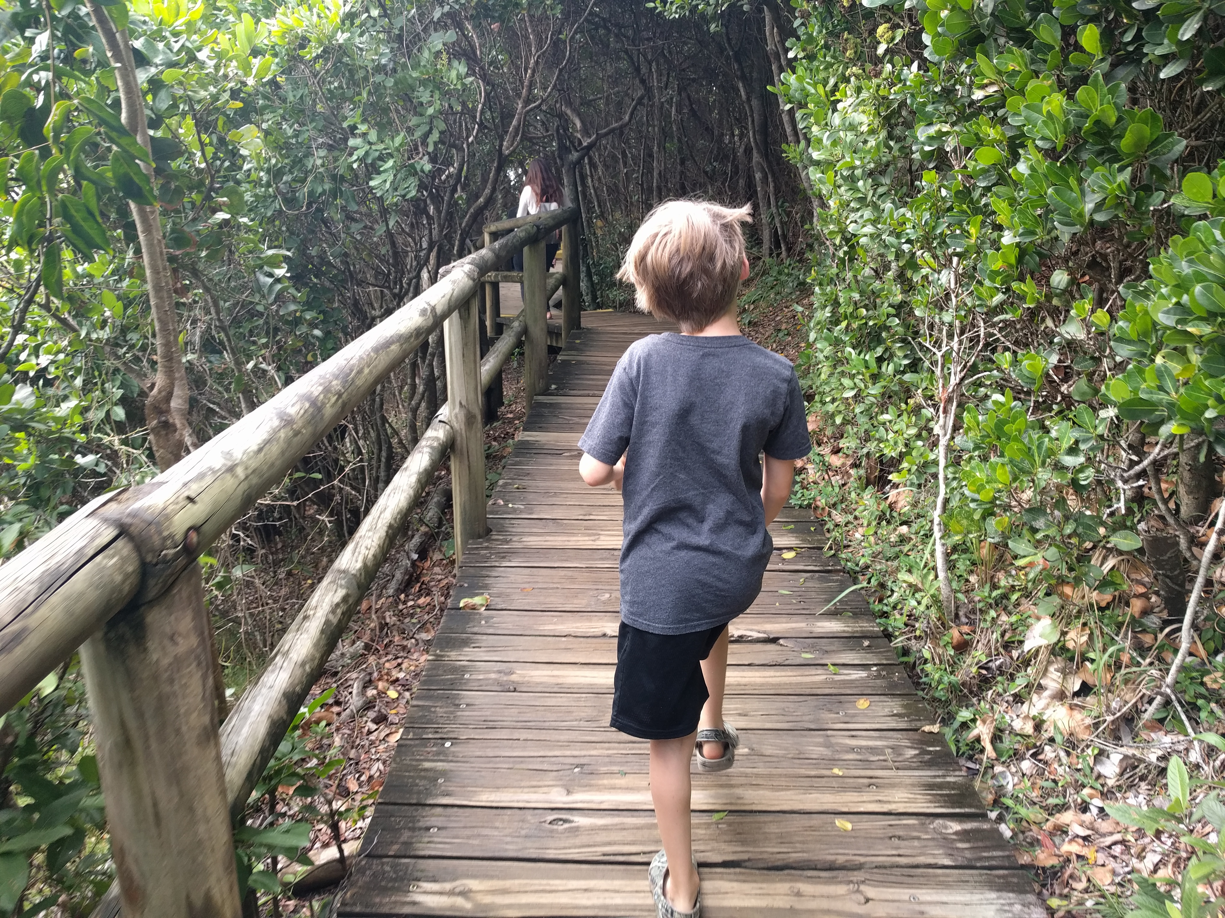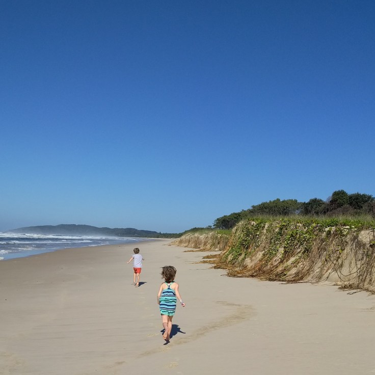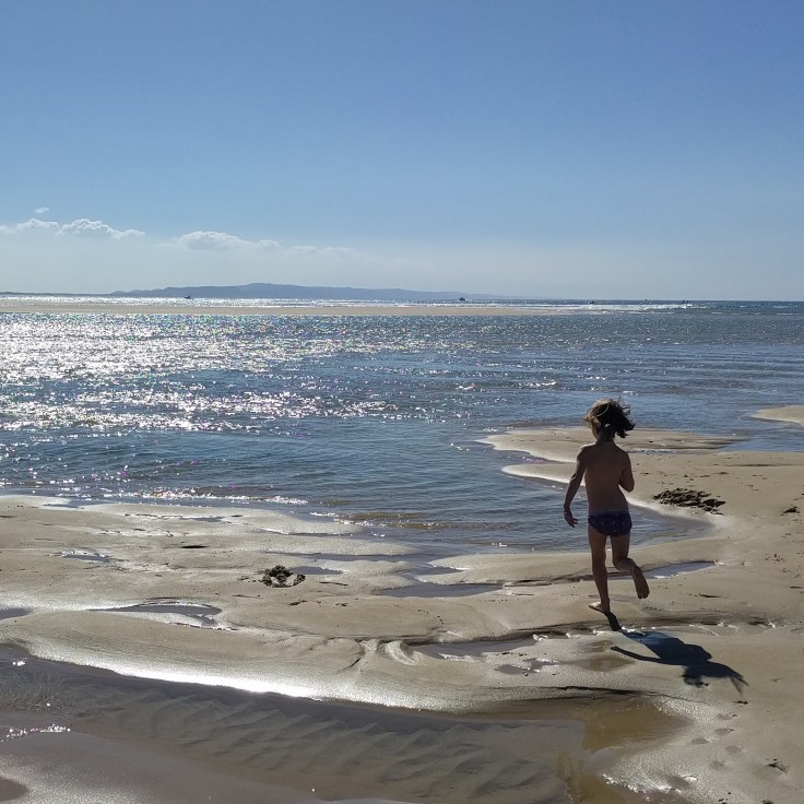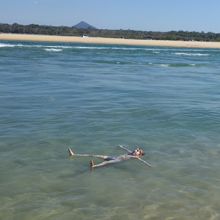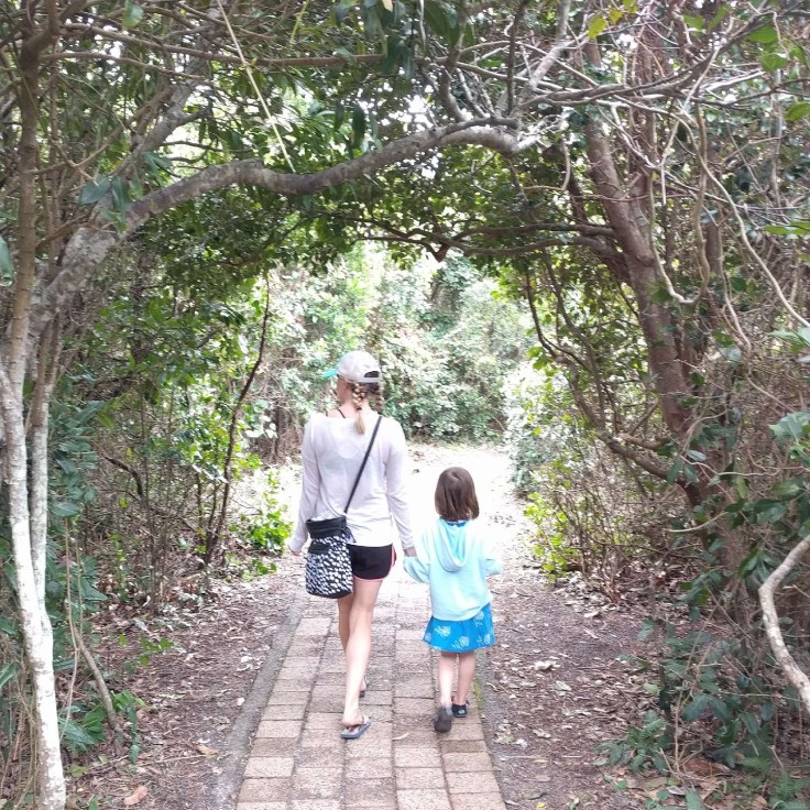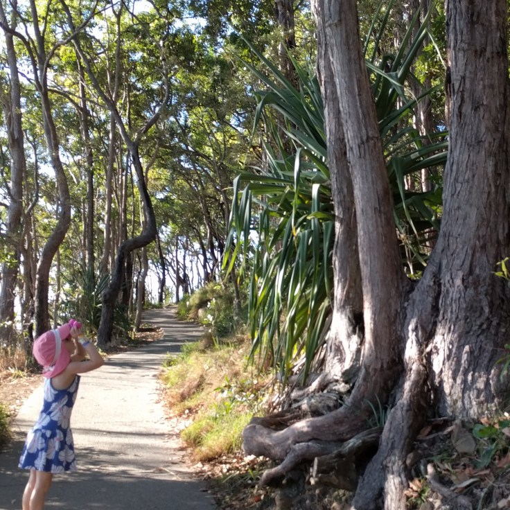 On our 2nd or 3rd day, we took a drive exploring the different beaches and national park in Noosa. We ended up at the Noosa Spit down at the end of one of the main beaches. This was an unleash dog beach and there was a wild current and sandbars that made us sink. The kids didn’t have swimsuits on, but Luke and Mae stripped to their unders and jumped in. They couldn’t help themselves. In Sydney, our beach had big waves. This was more like a pool. It got deep right off the shore and the current pulled you to shallow waters. They had so much fun. The water was a gorgeous color. The next day, Mae and I did a nature walk through the park along the coast while Wes and big kids went back to the beach. The weather was beautiful and we were enjoying nature.
