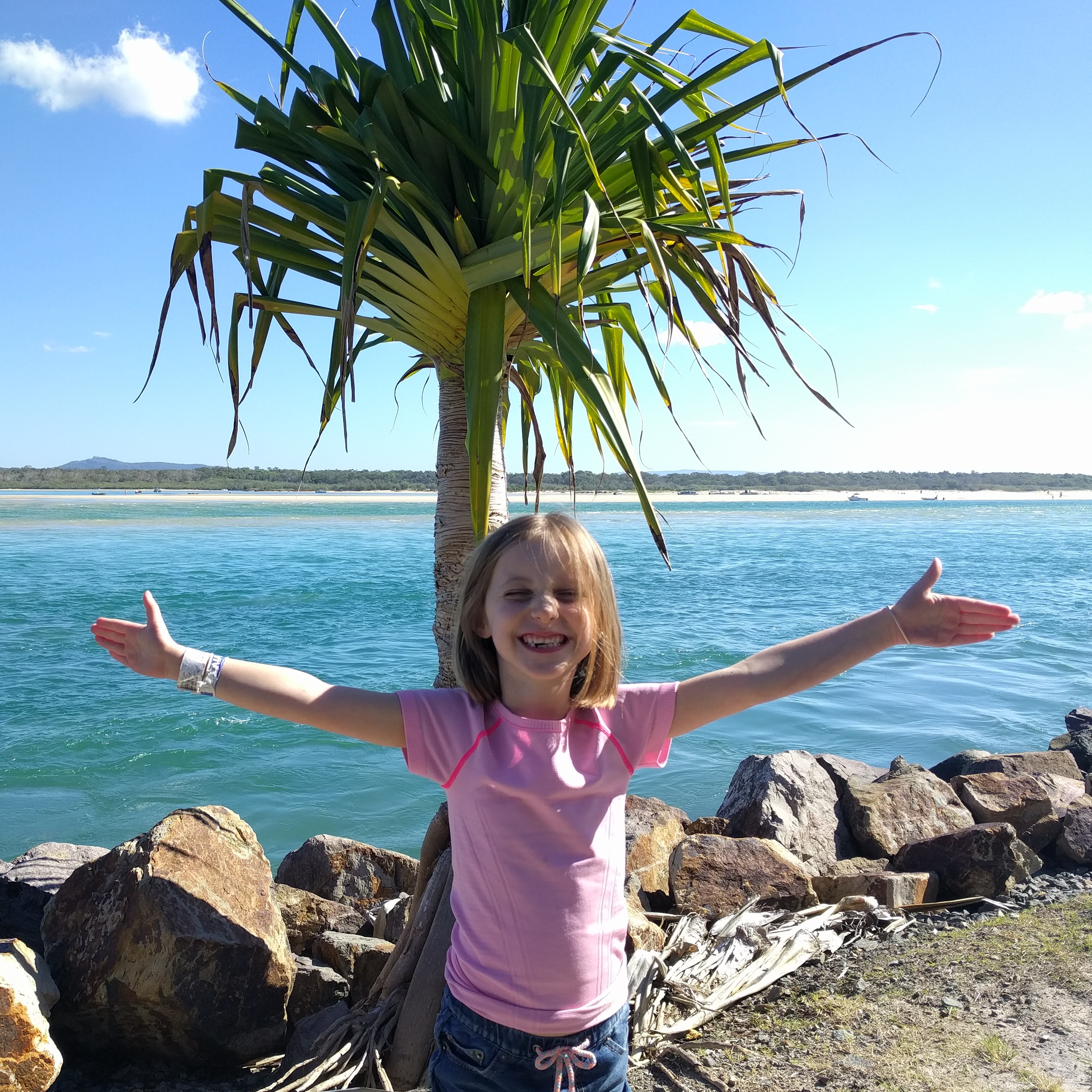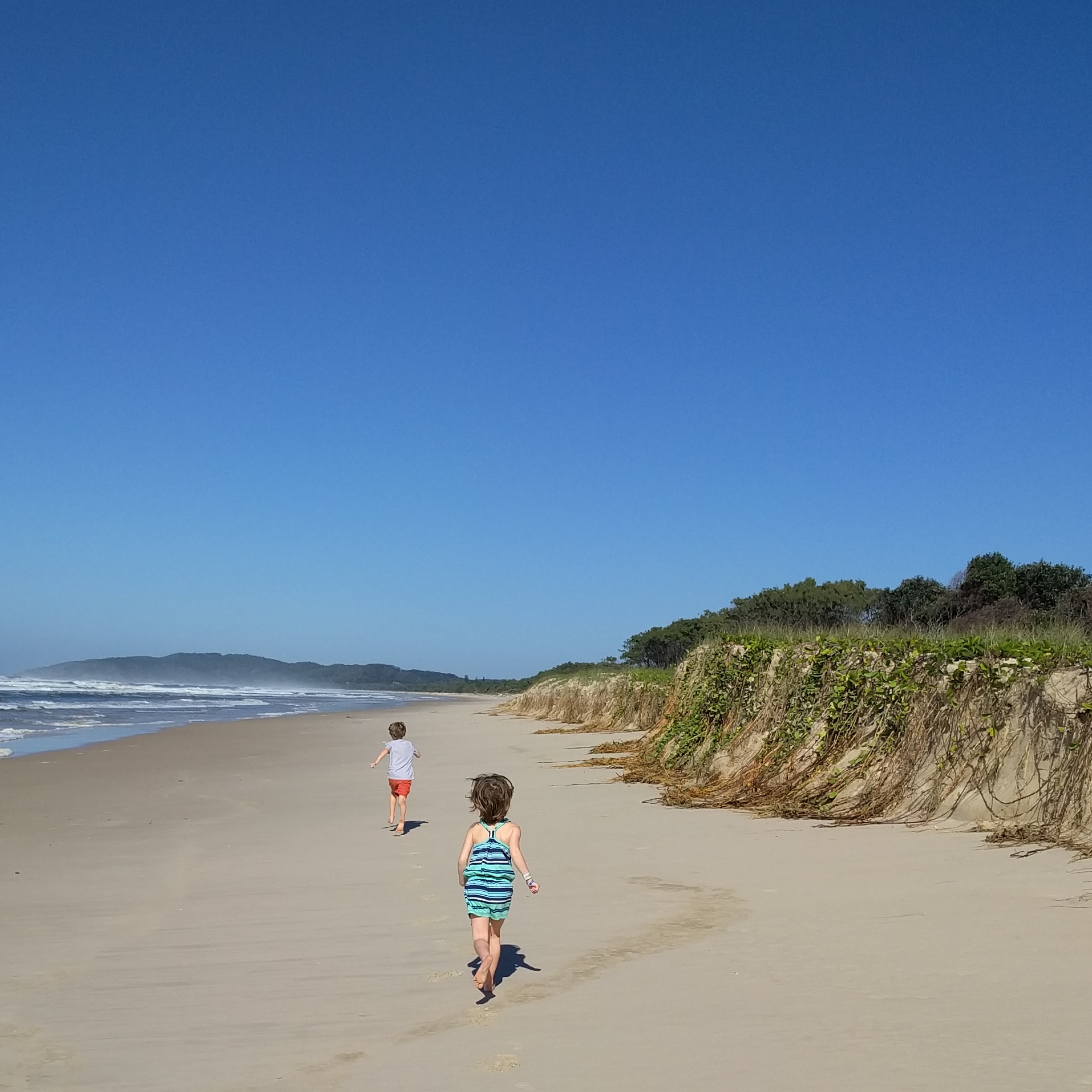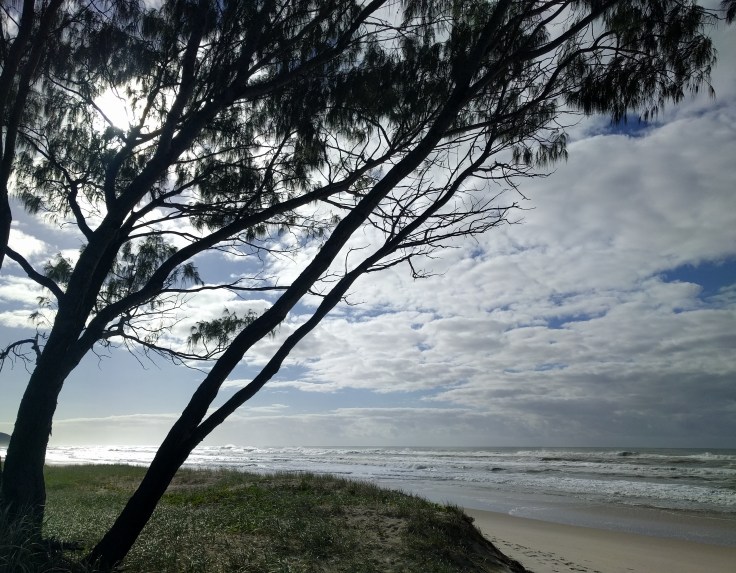 On our 2nd or 3rd day, we took a drive exploring the different beaches and national park in Noosa. We ended up at the Noosa Spit down at the end of one of the main beaches. This was an unleash dog beach and there was a wild current and sandbars that made us sink. The kids didn’t have swimsuits on, but Luke and Mae stripped to their unders and jumped in. They couldn’t help themselves. In Sydney, our beach had big waves. This was more like a pool. It got deep right off the shore and the current pulled you to shallow waters. They had so much fun. The water was a gorgeous color. The next day, Mae and I did a nature walk through the park along the coast while Wes and big kids went back to the beach. The weather was beautiful and we were enjoying nature.