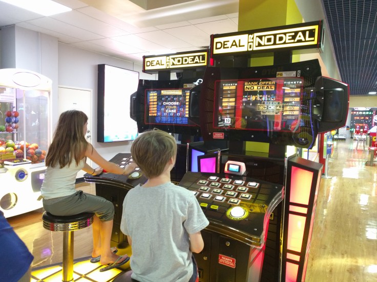 FRIDAY Another travel day! We weren’t quite ready to leave Byron Bay and the sun was shining, so we visited the beach near our house. Then we had a surprise for Luke. He wanted to go to an arcade, so unknown to the kids, we found one on the way to our new house. It was one of those HUGE places kind of like Dave and Buster’s. It was on the Gold Cost in Surfer’s Paradise. I would have preferred to be surfing, but he’s 10 and this is fun for him. All 3 kids were so excited. We spend so much of our time at the beach or taking nature walks. They got to take a break from being a tourist and just play!  They had a blast.