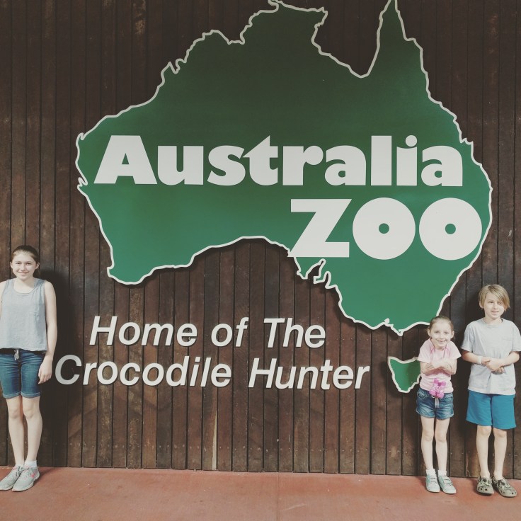 TUESDAY! AUSTRALIA ZOO DAY!  Koalas, Kangaroos, and Wombats…..Oh My!  We drove about an hour south to THE zoo. This is the famous zoo of Steve Irwin, The Crocodile Hunter. My kids don’t know him at all. BUT they do know Bindi. She hosts a show we watched where kids compete at the zoo in challenges. They were excited to see the zoo for THAT reason. Ha! We had a membership (thanks, Daddy!) to the zoo in Sydney and that was super fun. We love seeing Aussie animals the best. We had heard great things about the Australia Zoo.  So, we did it and I am so glad we did. Unfortunately, Wes began to get sick as soon as we arrived and continued to go down hill during our time in Noosa. So while I loved, loved, loved Noosa…our trip was not as fun with one of our teammmates down for the count. We were able to pet and feed kangaroos. That was an amazing experience. Once in a lifetime. We spent quite a bit of time with the roos because it was so fun. We also liked lemur island where 10 lemurs were just running around. They were so playful and adorable. We saw a wombat and a cassowary and of course, crocs. We saw some that Steve had caught himself.  We did see one animal show that was very fun.