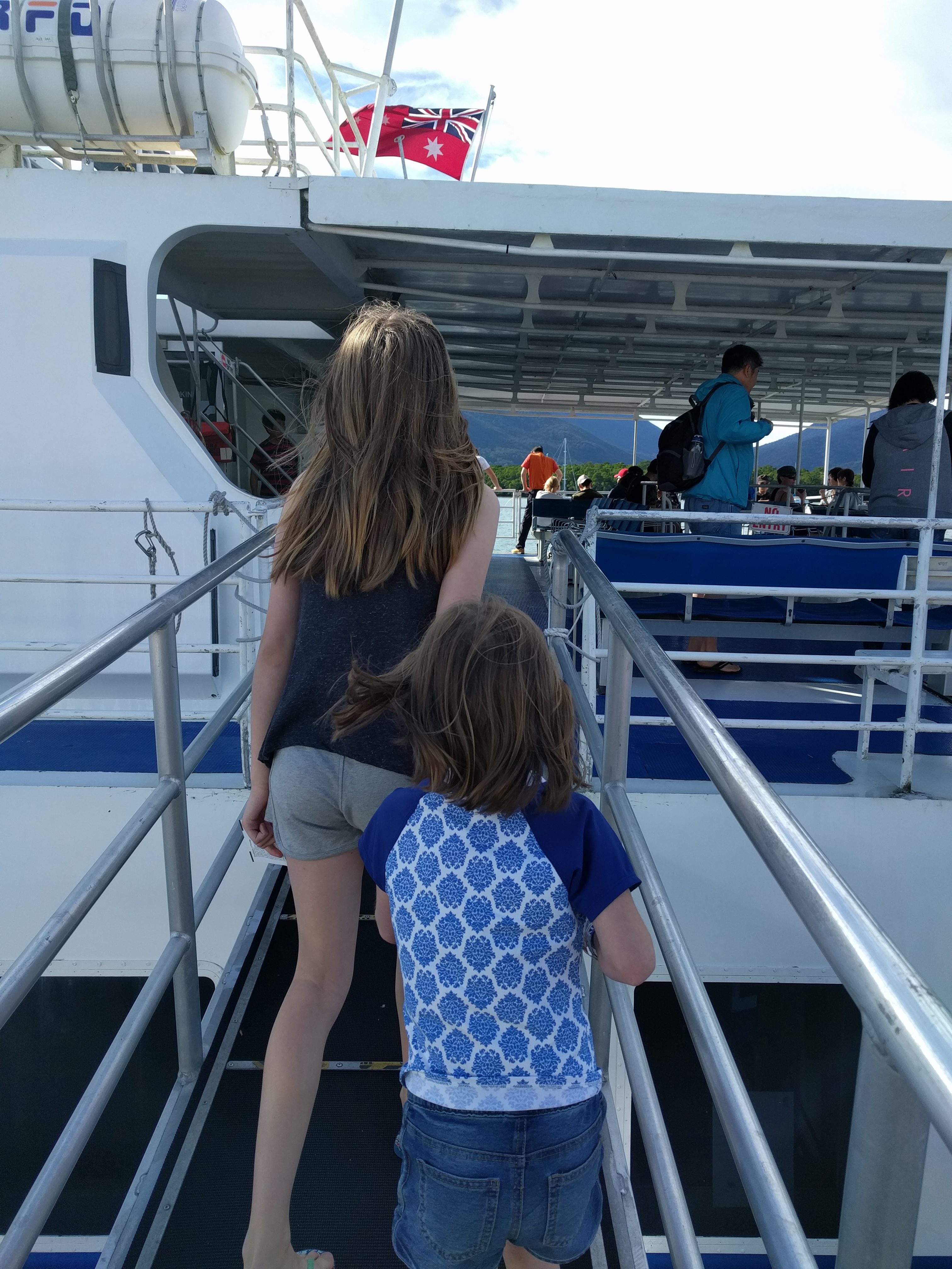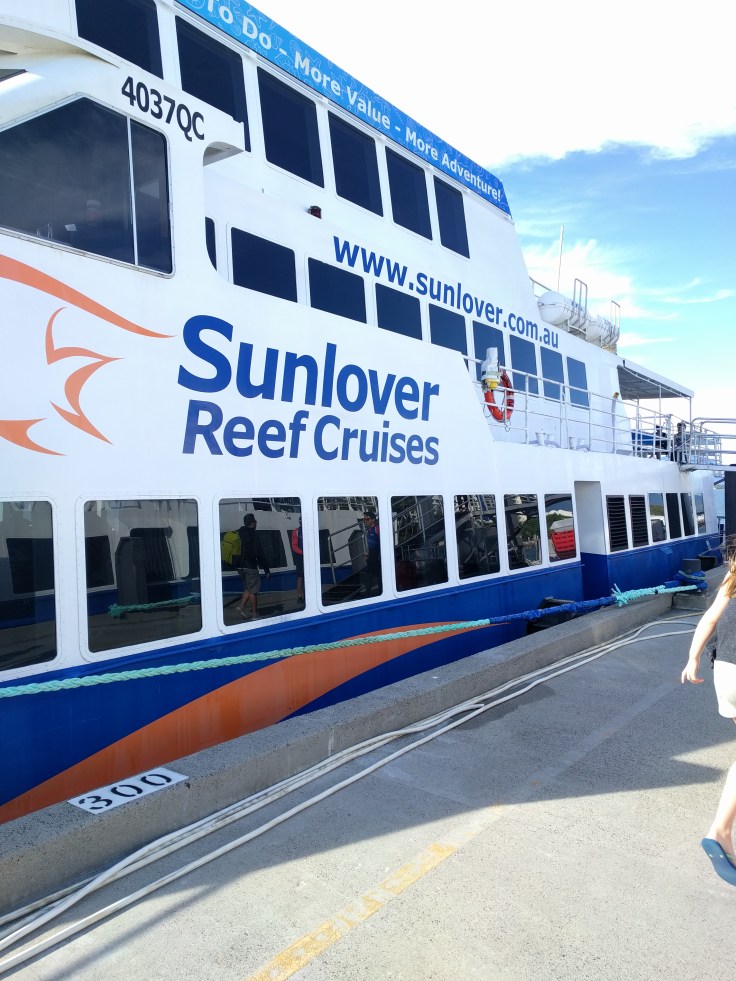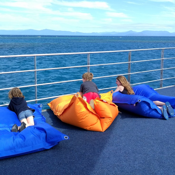 We took a tour with a company called Sunlovers that departed from Cairns. There were so many tours to choose from. We chose this one because it seemed like they had lots of options for fun in case some of our crew wasn’t into snorkeling. Elle was all in. Mae was a maybe. Luke was a firm no.