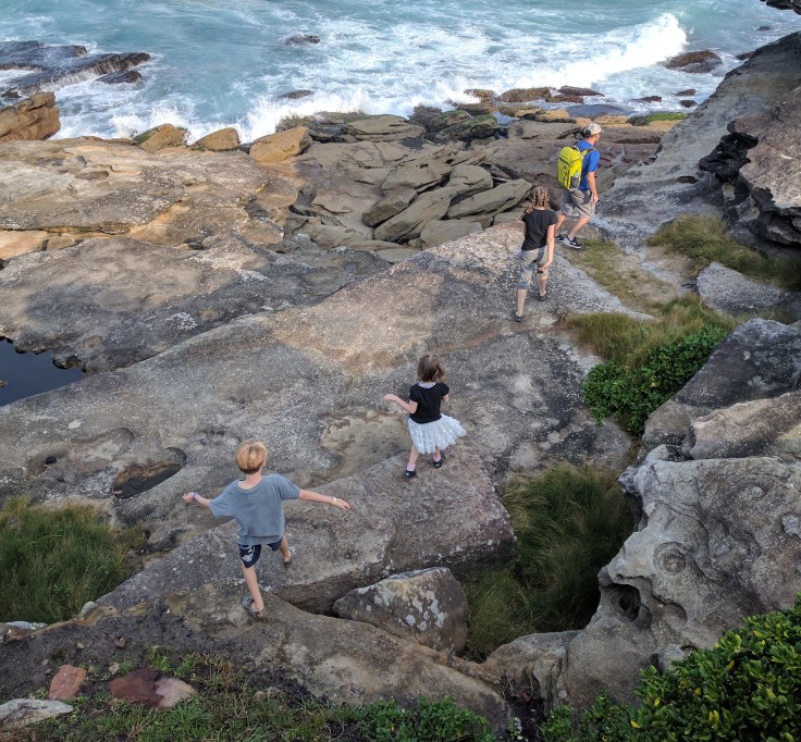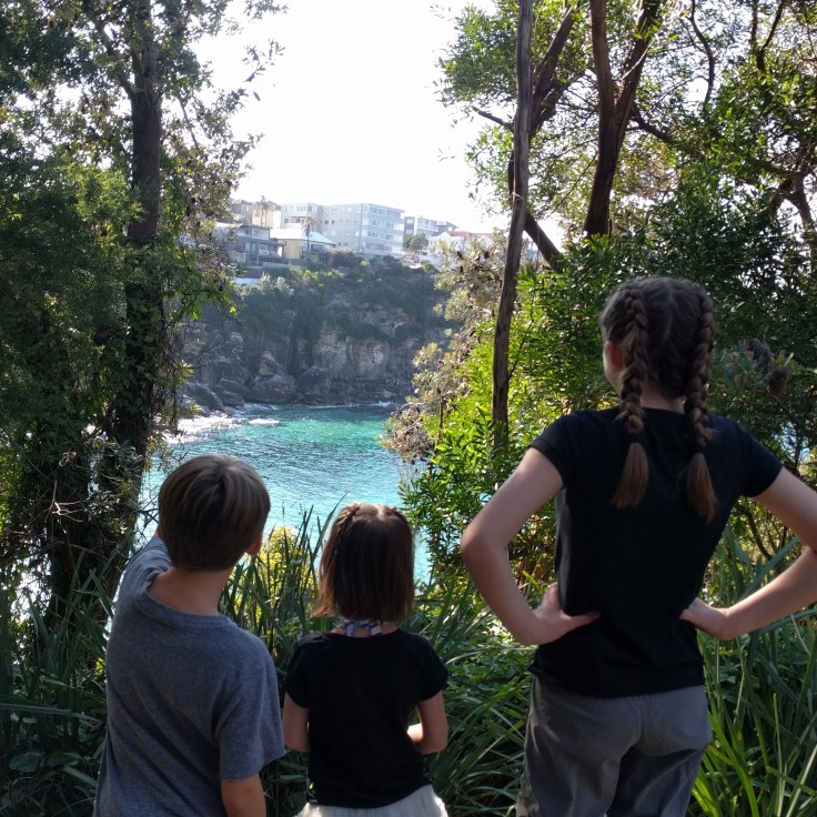 Most places I read predicted the walk takes around 2 hours at a leisurely pace. I don’t think that factors in 3 kids. We had no idea how long we’d be gone or how many times we would stop. We just went for it. First stop. Gordon’s Bay. I’ve been here a few times on normal walks because it’s very close to Coogee, but today it looked different. I don’t remember the water being this pretty shade of turquoise. We didn’t want to hang around too long because we knew we could come back here anytime. However, it was beautiful and serene.
