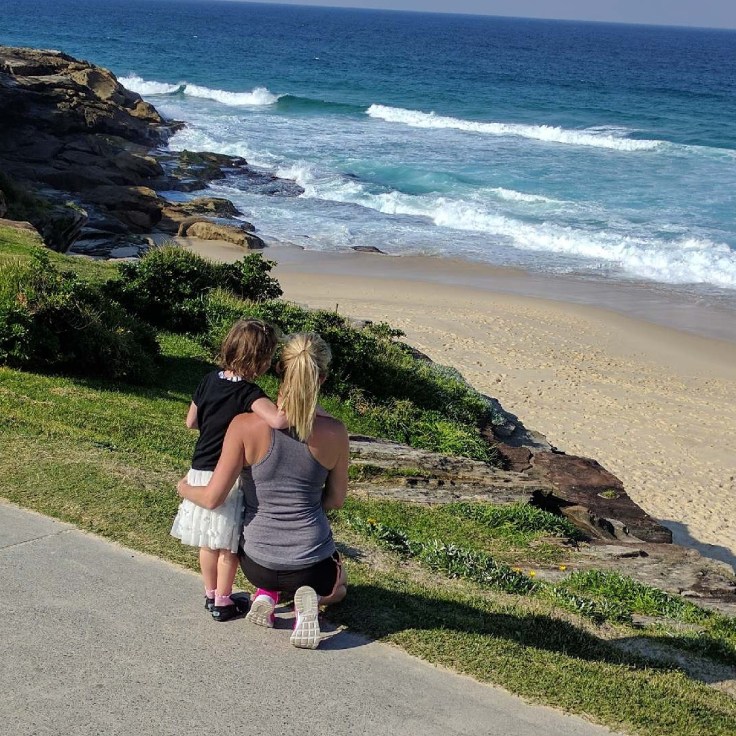 May 11, 2017: Here we go! Weather forecast was just right. About 70 degrees and mostly sunny. We chose to go on a weekday hoping there would be less people. We left right after breakfast. First stop…coffee for mom. First tumble…Mae Mae fell before we even made it a block down the street. It was all good. As I mentioned, most people walk Bondi to Coogee. Since we live in Coogee, we decided to start here, walk to Bondi and take the bus home. Off we went. We decided to take a “start” and “finish” selfie, and a nice lady offered to take our “start” pic for us!
