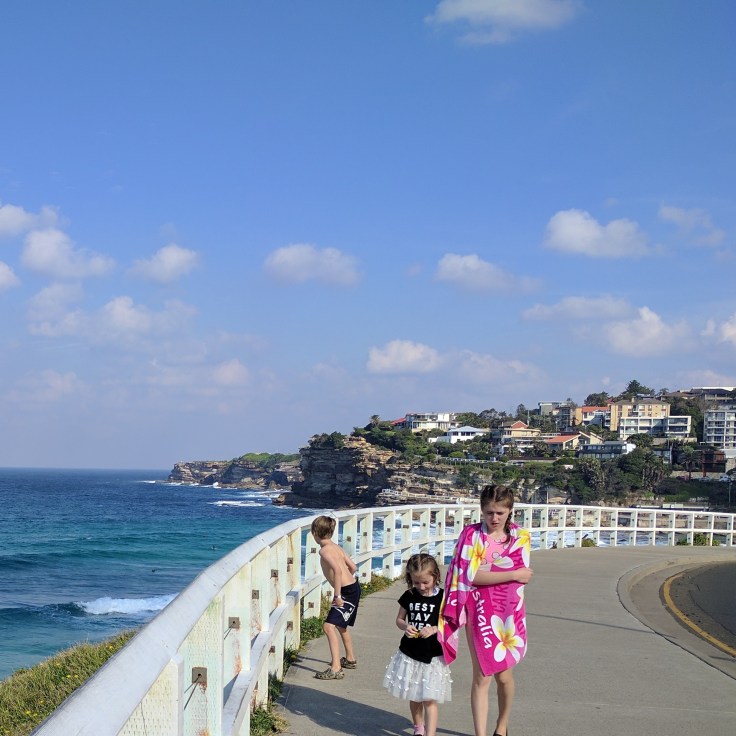 THIS. This picture below is everything and may need its own blog post someday. It’s not a perfect picture. It truly epitomizes this experience. THIS is what we came for. Not the beaches or the coffee or the kangaroos. THIS. In Denver, my kids walked in 3 different directions, and if we ever did go somewhere all together, they’d be in the car fighting. But here, in Australia, they are stuck with each other and it’s been good and bad and ugly. But they’ve done it all together. The reason I’m so glad Wes snapped this photo is because it’s something we’ve done 100 times living here in Coogee. Walking up Coogee Bay Road home from _________.  And, here, after a 5 hour walk and 2 busses to get home… they’re strolling along side-by-side chatting it up (which will likely end in a blowout and someone storming ahead).  They now have THIS 6 month shared experience.