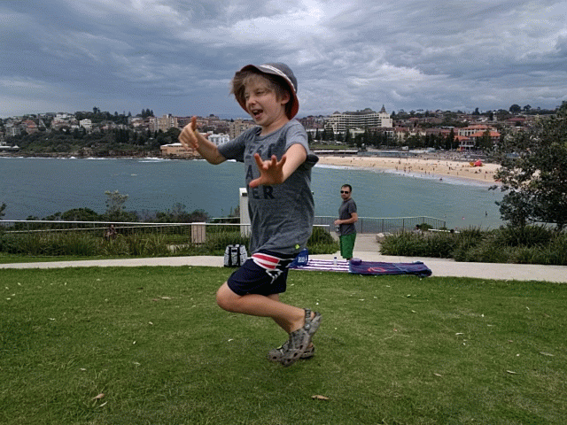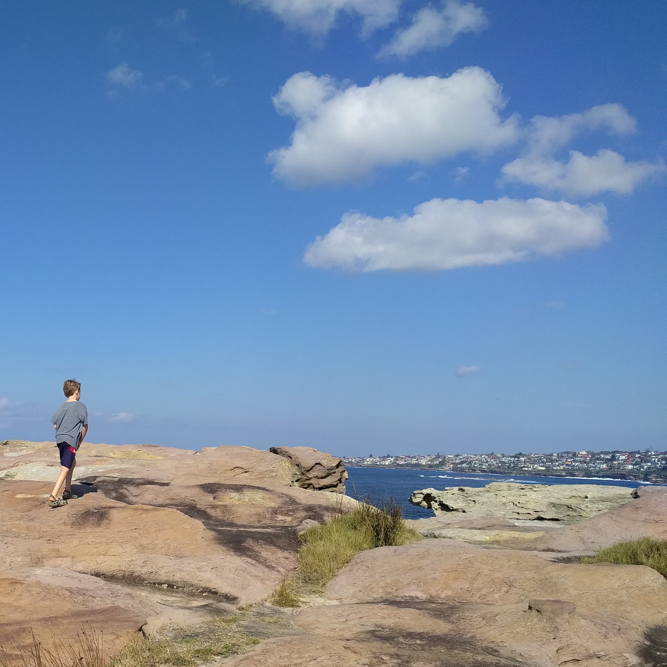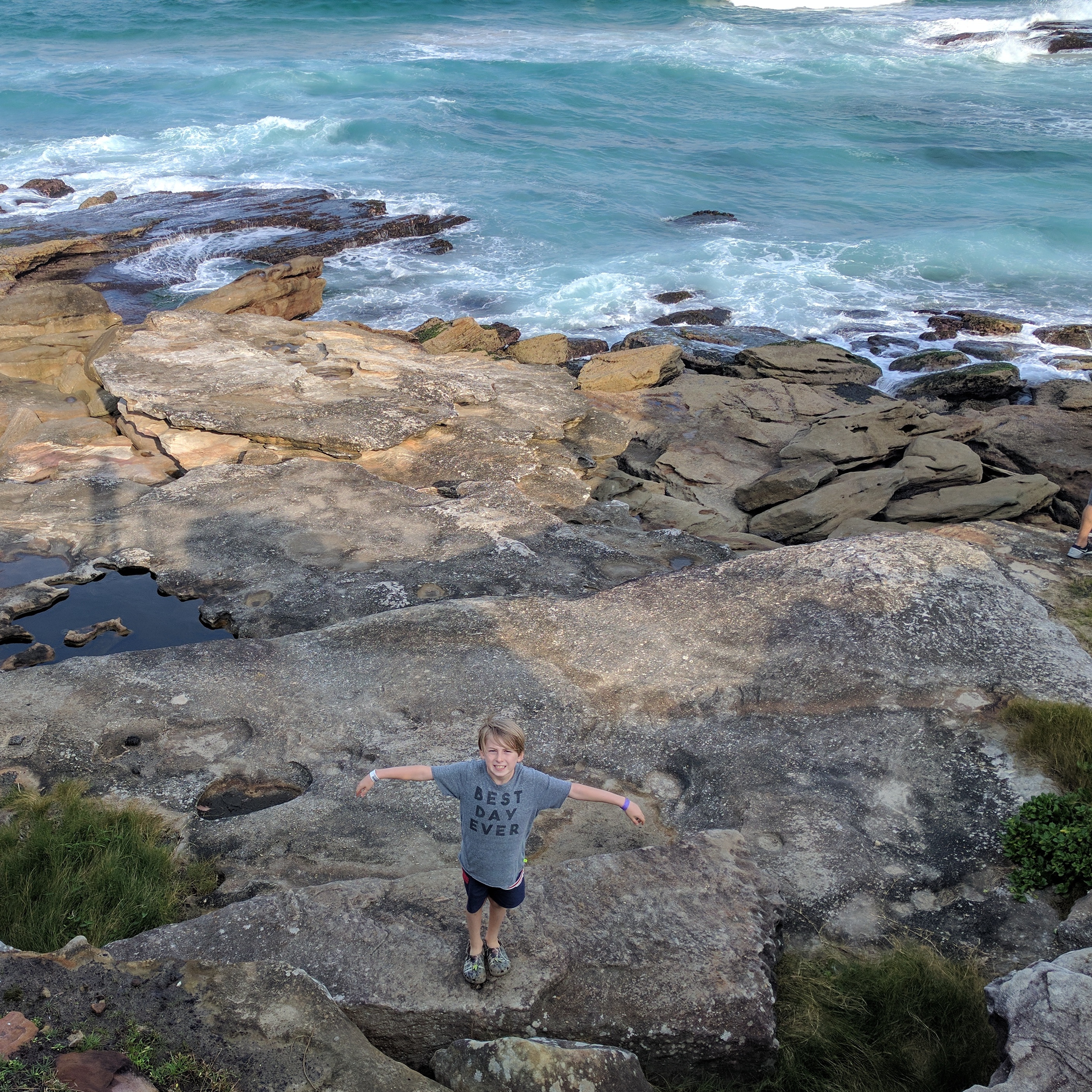 A little background: The Bondi to Coogee walk is kind of a big deal around here, and we are lucky enough to live in Coogee. So, we ended up seeing bits of it just wandering around our neighborhood. However, people travel far and wide to take this 6k costal walk because it’s so beautiful. We decided to walk Coogee to Bondi because we’re rebels like that. The walk technically begins at Bondi Beach (see map below) and climbs south along the coast of Sydney and ends at Coogee Beach. The walk actually does continue on the other side of our beach and is also very pretty. I walk that way often when I take a morning stroll.  We’d been to Bondi before and Clovelly and Gordons’s Bay. The rest was going to be a surprise. And it is just that. Every time you climb a staircase or turn a corner, there was a new sight to see. Luke ran ahead a few times to peek and would run back and say, “Mommy, you’re going to love this. It’s so pretty.” Along the windy walk, there are rocks, cliffs, a cemetery, public beaches, playgrounds, and ocean pools. Most of all, you are walking along the most stunning coastline and seeing the most specatular views.