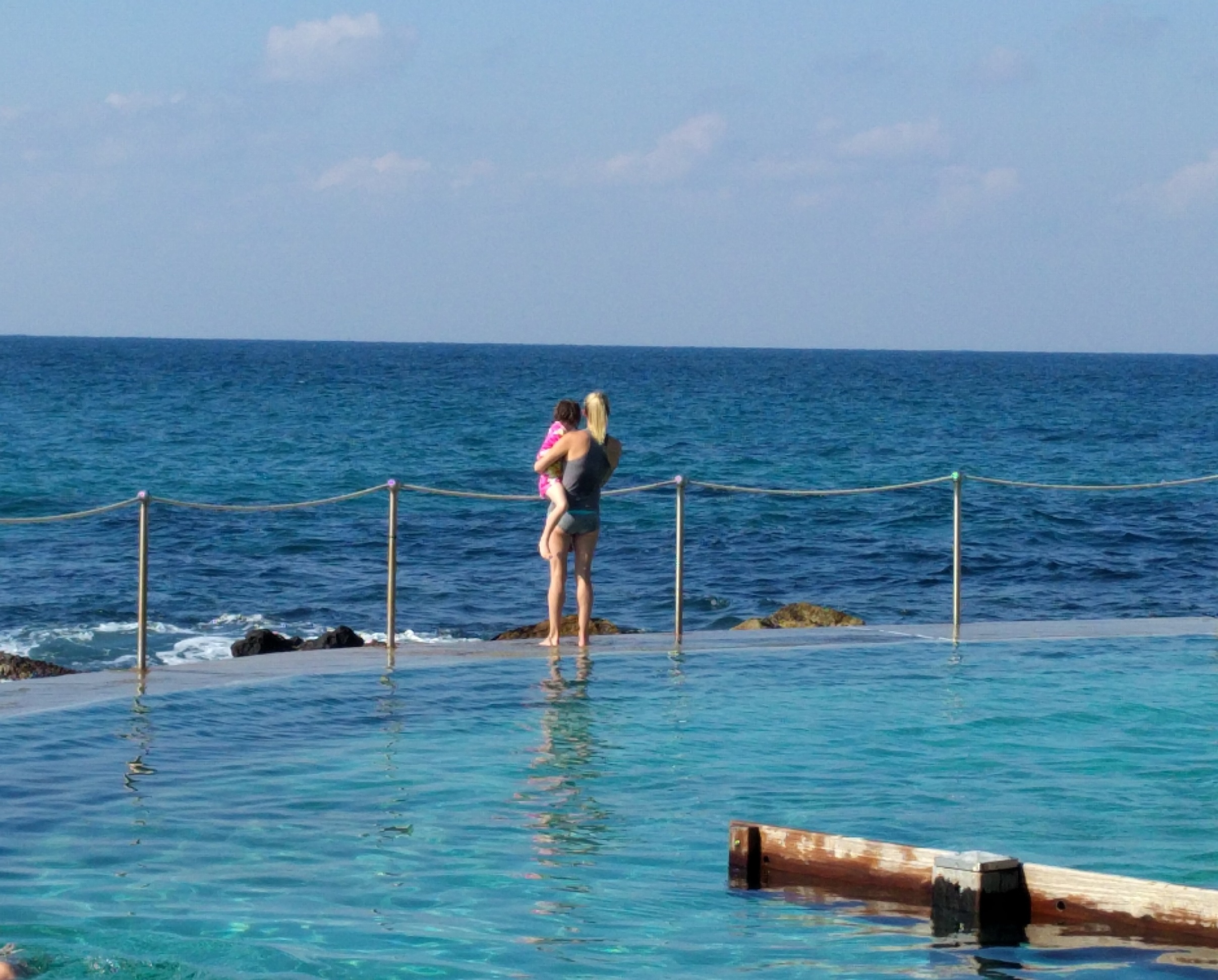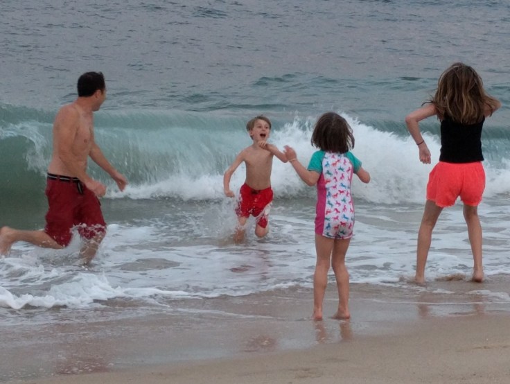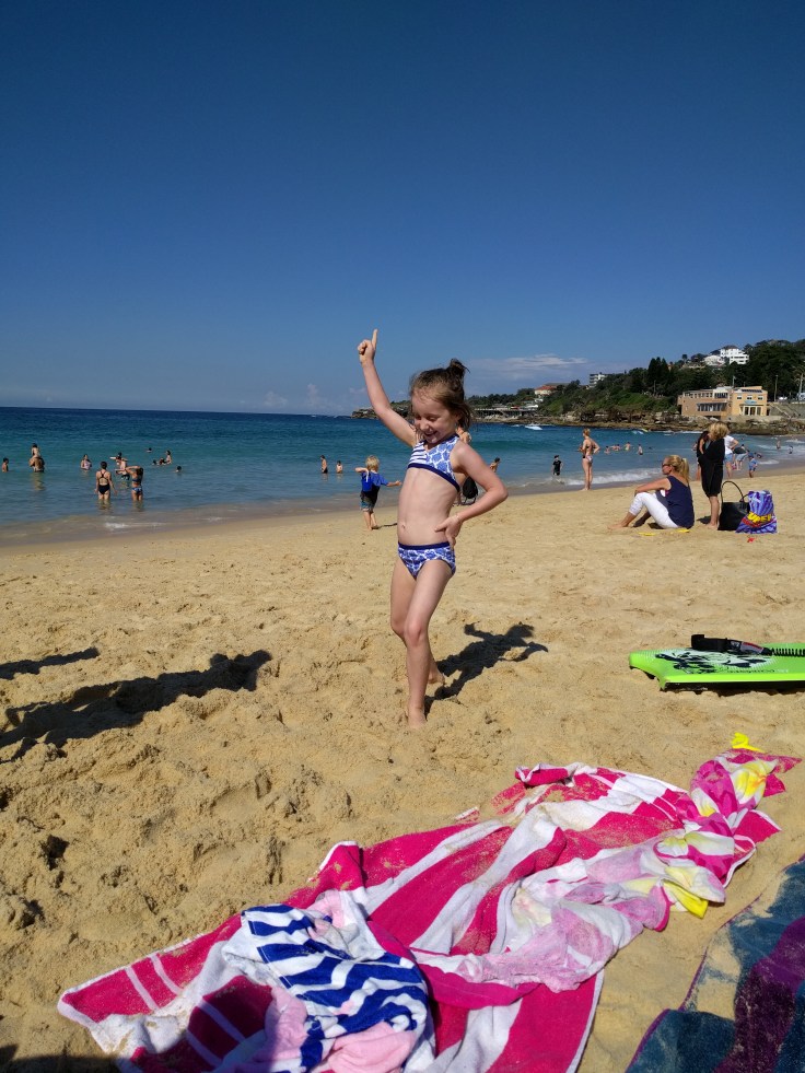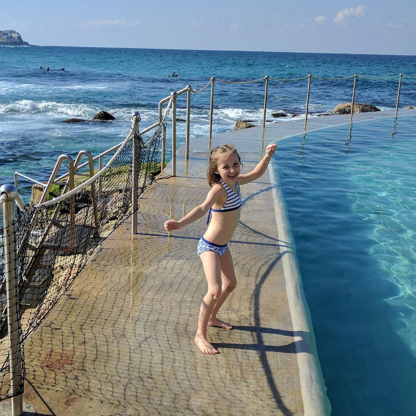 Onward. Next we arrived at Bronte Beach where we stayed for a while. First, we unpacked all our snacks and had a little lunch by the beach. Wes popped up to see the town as he does. We watched surfers for a while. The waves were huge! I told the family I wanted to take a quick peek at the ocean pool, and they all came along. Good thing. We had no idea it was so nice. The kids hopped in right away. It was cold, but felt like a real pool. Then an orange rolled out of our bag and down the rocks and plooped into the water. There is a pic below of us all trying to rescue​ it. What a funny memory. Glad Wes snapped a pic. Another man was watching the whole thing. How silly we must have looked. That’s us… silly Marshalls trying to save an orange from the ocean. We succeeded, by the way. It was a lovely break at Bronte. We must have been there for at least an hour. Next up… on to Tamarama!