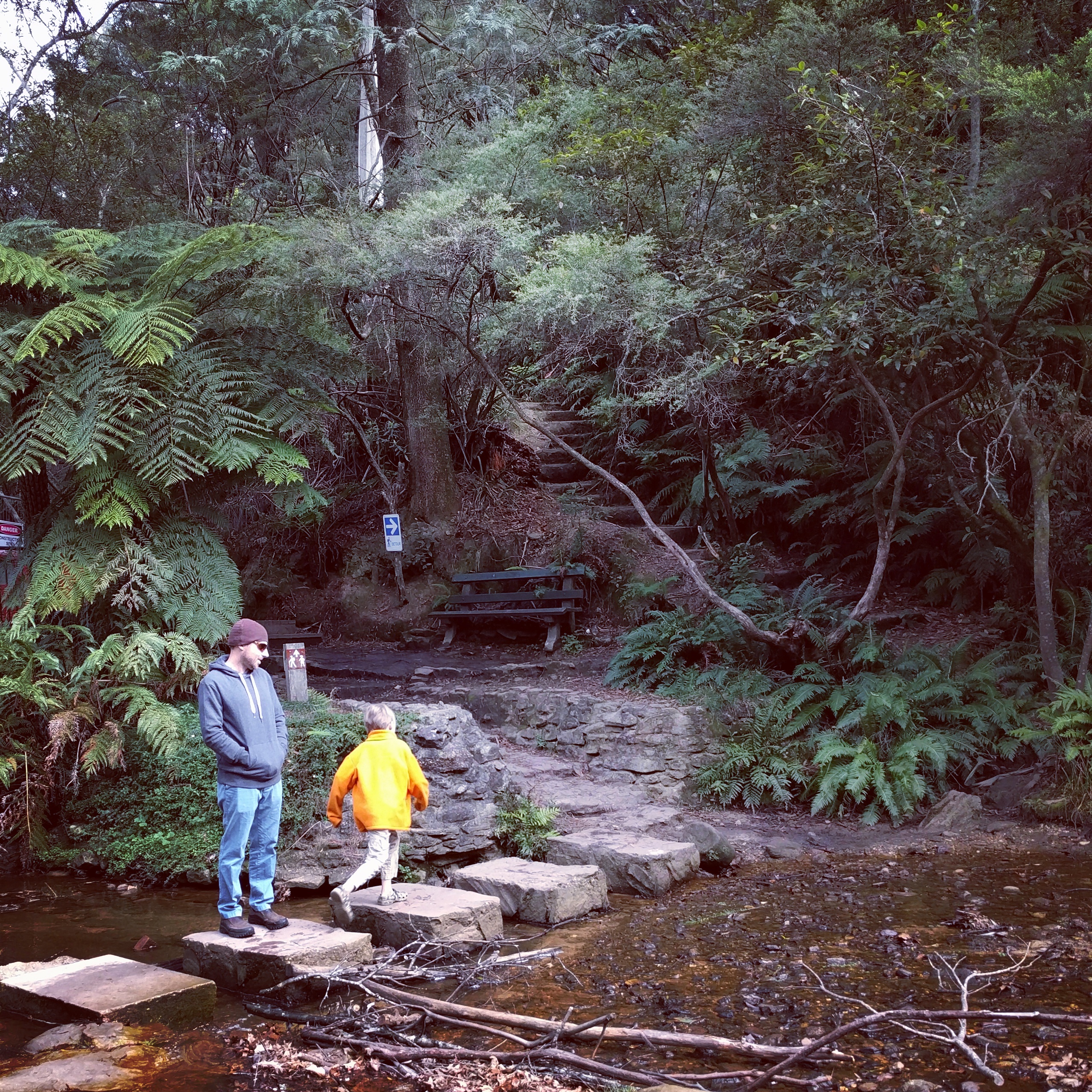 We have an Airbnb for the week. The house is a renovated 19th century​ miners cottage that overlooks a mountian ash eucylptys reserve. Winter is here, so it’s cold. When we left Coogee, temps were dipping into the 60s. Here, it’s in the 50s. We haven’t been this cold since January. The air here has a chill, but thankfully, the sun has been shining so we are warm enough to go out and explore during sunlight hours. The house is great…not heated, but the space heaters keep us really toasty. I love the kitchen and the gardens are  beautiful. Nice view! There is a record player which we’ve enjoyed. Lots of time for puzzles, board games, cards, movies, and dance competitions. Here are some house photos: