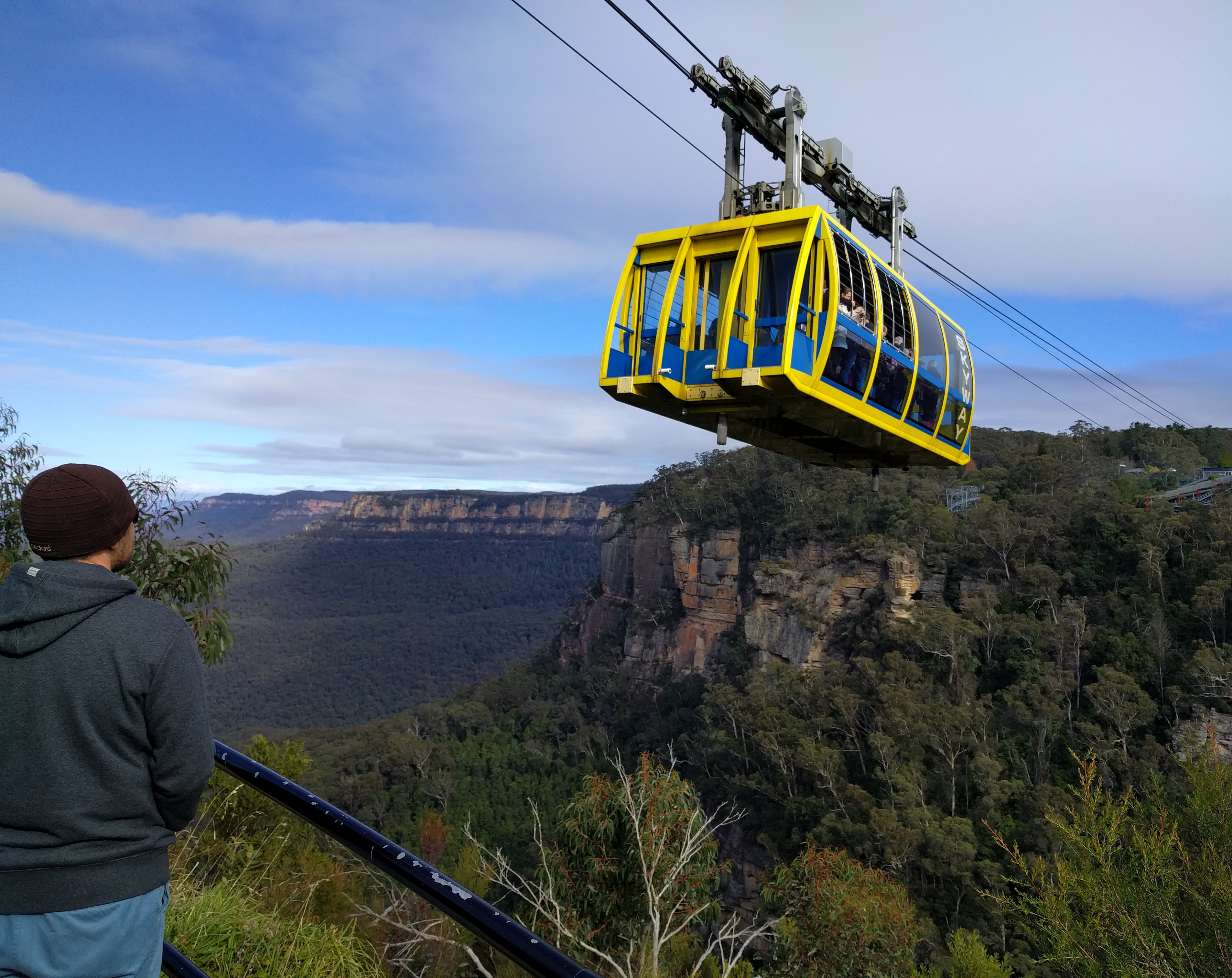 Skyway (a glass bottom cable ride between cliff tops soaring over the Jamison Valley)
