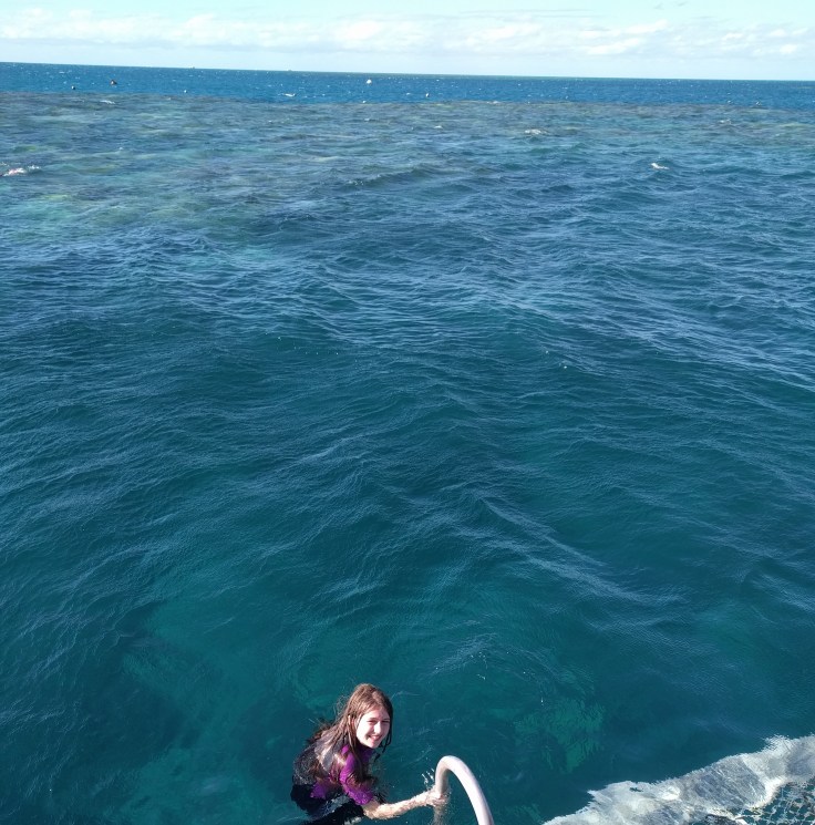 TUESDAY: This day will 100% be getting its own blog post. We snorkled in The Great Barrier Reef. I wish we had a ton of photos to show you how incredible it was, but we were too busy living it up to take pictures. I still have to go through Wes’ phone and Elle’s underwater camera. It was the best thing I’ve ever seen in my life. There are no words to describe what we saw and how it felt to see it. The best part of the day was the 20 minutes or so that all 5 of us were out on the reef together. I didn’t think it would happen due to some serious fears, but we did it!!!! It was a bumpy boat ride to get there and I had to “rescue” Mae from a fish attack, but it was worth it…even for my kids who have seen so much and may be unimpressed by nature these days…it blew their minds. I’m so happy they all did it. It was the most exhausting day ever. Must recoup, look at photos and process. Stay tuned for a GBR special edition blog post! For now…here are a few pictures from the day: